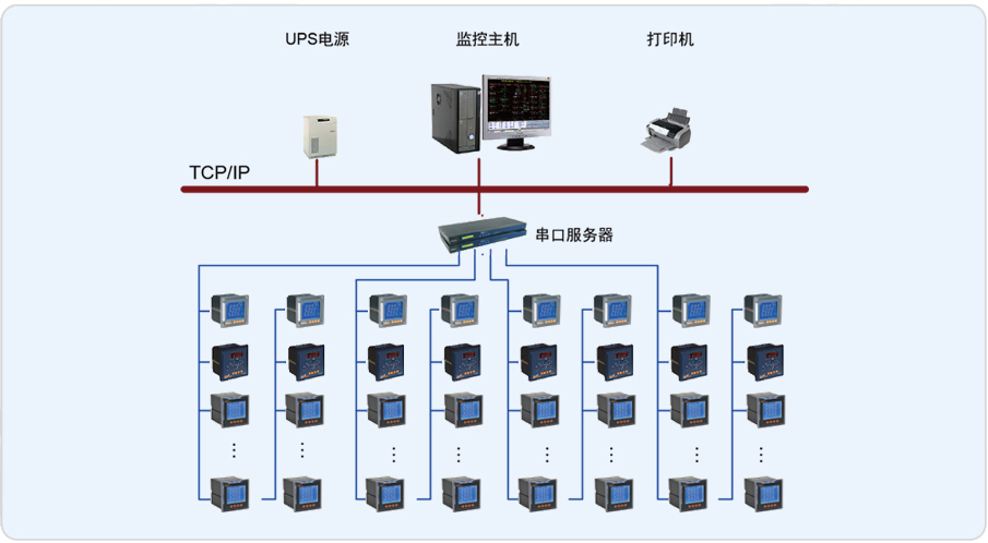 柳州麗笙酒店電能管理系統(tǒng)的監(jiān)控范圍為分布在兩個(gè)配電室的67只PZ48-AI3/C 儀表。經(jīng)過節(jié)能改造后進(jìn)線采用多功能表,各支路采用電流表。